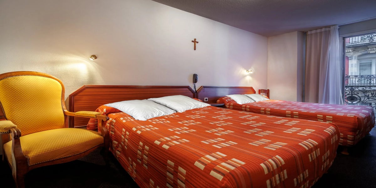 Nous vous proposons 56 chambres confortables équipées du wifi, d'un téléphone direct, d'une télévision, d'un sèche-cheveux, d'une salle d'eau et de WC. Retrouvez tout le confort moderne dans le charme du style ancien et la chaleur d'une ambiance familiale.